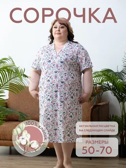 Ночная сорочка, большие размеры, с коротким рукавом хлопок