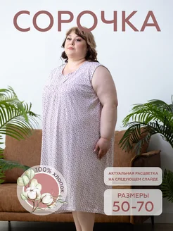 Ночная сорочка, большие размеры, без рукавов хлопок