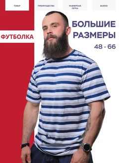 Футболка, U-образная, в полоску, большие размеры, хлопковая