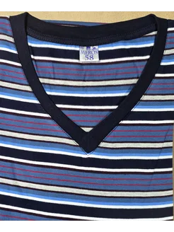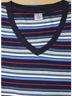 Футболка, V-образная, в полоску, большие размеры