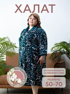 Халат бархатный велюр на молнии больших размеров