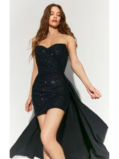 Платье вечернее короткое с корсетом и шлейфом на торжество