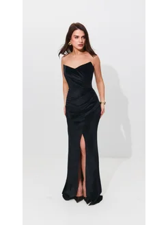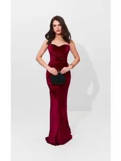 Корсетное вечернее бархатное платье с разрезом длины макси