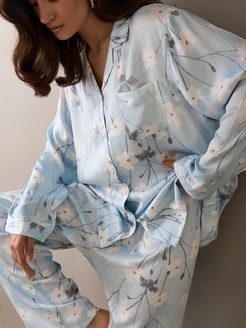 Пижама со штанами и рубашкой из вискозы домашний костюм