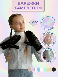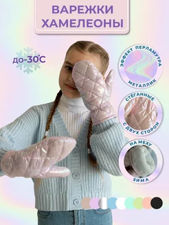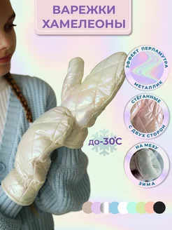 Варежки-хамелеоны с перламутровым эффектом на меху