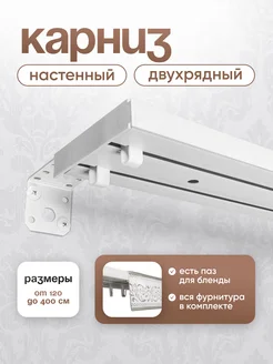 Карниз настенный с пазом для бленды и фурнитурой 200см