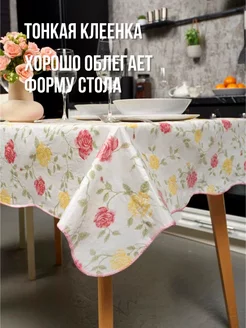Скатерть клеенка с розами на тканевой основе для дачи и дома