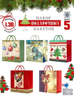Подарочные пакеты новогодние Premium. Набор (5шт) 32Х26Х14см