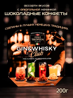 Конфеты шоколадные с виски, джином и ликером, 200г