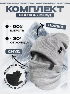 Зимняя шапка со снудом найк комплект 3 в 1