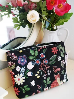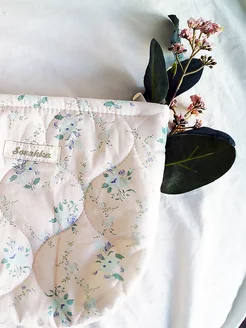 Косметичка стеганая тканевая в цветочек