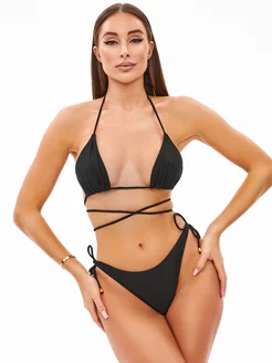 Купальник раздельный черный с завязками