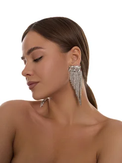 Серьги бижутерия со стразами в форме бантиков премиальные