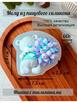 Силиконовый молд "Мишка с тюльпанами 2D"