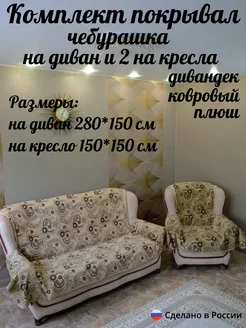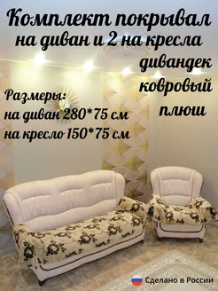 Комплект покрывал из плюша на диван и 2 кресла дивандеки