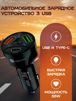 Быстрая зарядка для телефона в прикуриватель 55W USB Type-c
