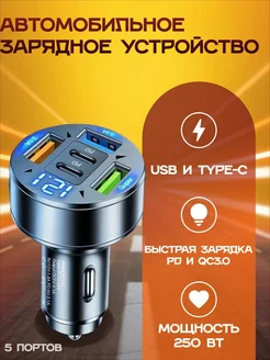 Зарядное устройство в машину прикуриватель USB Type C 250 Вт