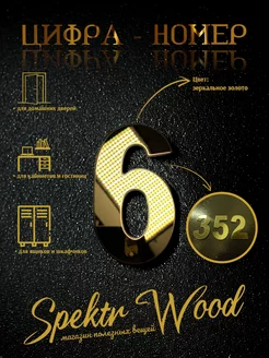 Номер для двери, цифра 6. 1 шт