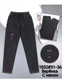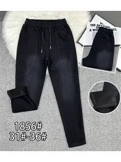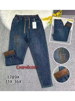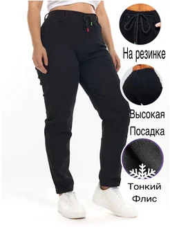 Джинсы мом на резинке утепленные на тонкий флис