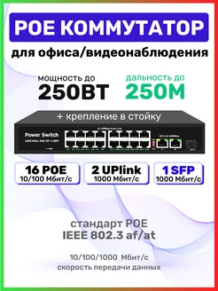 Сетевой коммутатор (свитч) POE 16 + 2 Uplink 1 SFP порт