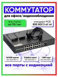 Гигабитный коммутатор (свитч) 16 POE, 2 Eth, 1 SFP