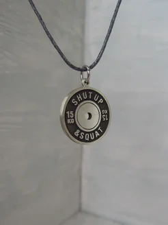 Кулон блин от штанги Shut Up & Squat из белой бронзы