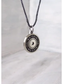 Маленький кулон диск штанги NO PAIN NO GAIN, белая бронза