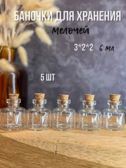 Стеклянные баночки для бисера и мелочей с пробкой,5шт3*2