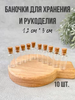 Стеклянные баночки для бисера и мелочей с пробкой 10 шт 8*2