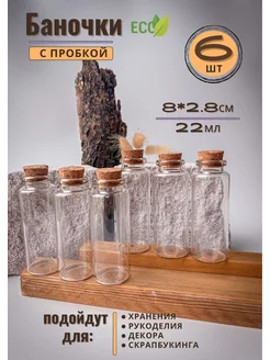 Колба-баночка для мелочей и декора с пробкой стеклянная6шт