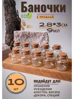 Стеклянные баночки для бисера и мелочей с пробкой,10 шт