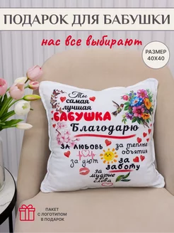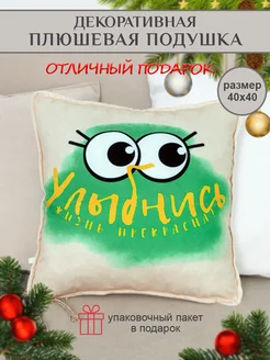 Декоративная плюшевая подушка 40х40 с надписью и рисунком