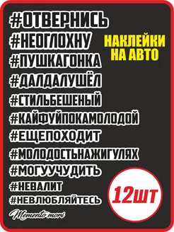 Наклейки на авто хештег 12 шт, на машину,стекло,вело,самокат