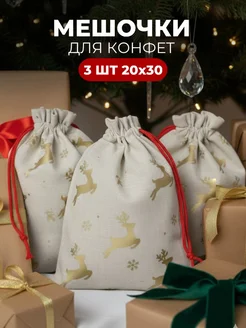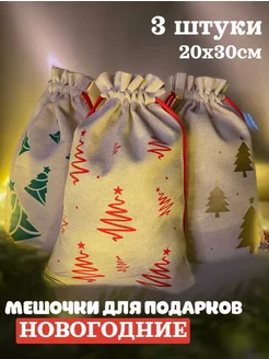 Новогодний мешок для подарков, 3 штуки 20х30 см, с завязкой