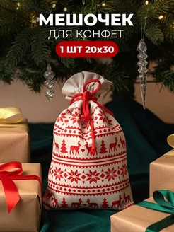 Мешок подарочный новогодний, 1 штука 20х30, с завязкой