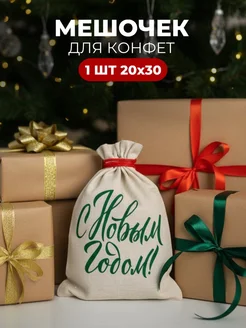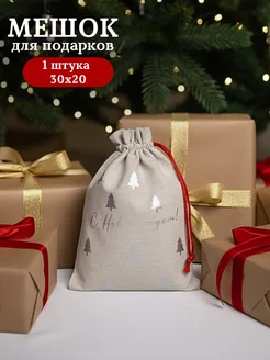 Новогодний мешок для подарков большой, 20х30 см, с завязкой
