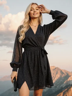 Вечернее платье приталенное с вырезом и длинным рукавом