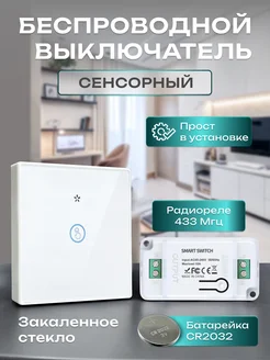Беспроводной сенсорный выключатель 1кл. с радиореле 220В