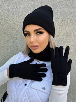 Шапка женская зимняя вязаная снуд шарф комплект