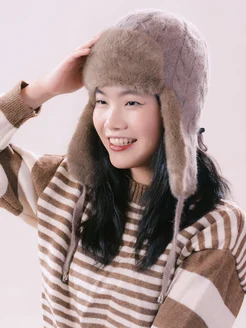 Стильная шапка-ушанка из меха норки модный