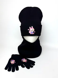 Комплект шапка снуд и перчатки Лабубу