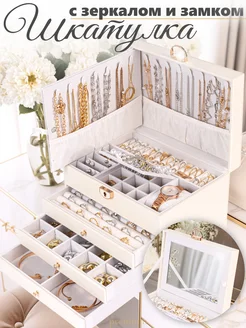 Большая шкатулка для украшений с зеркалом и замком