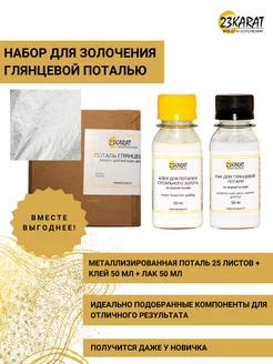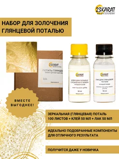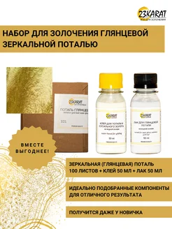 Набор поталь листовая золотая, клей и лак