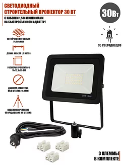 Строительный прожектор быстросъемный 30Вт кабель 1,5м клеммы