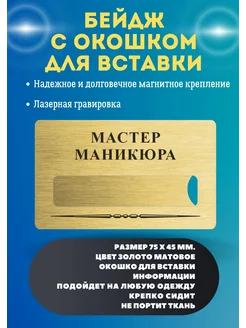 Бейдж Мастер маникюра с окошком для вставки имени