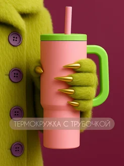 Термокружка с трубочкой в стиле Chako Lab, 1000 мл