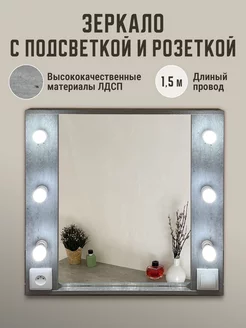 Зеркало с подсветкой и розеткой Гримерное Зеркало