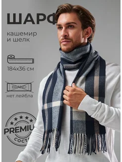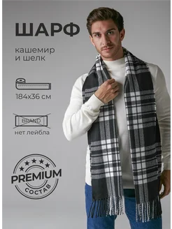 Шарф мужской серый в клетку кашемировый зимний осенний