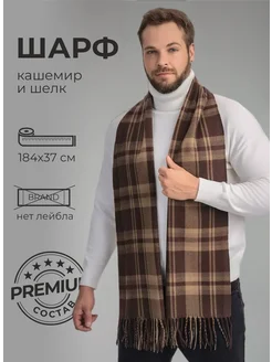 Шарф коричневый в клетку унисекс зимний кашемировый