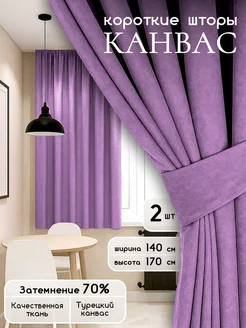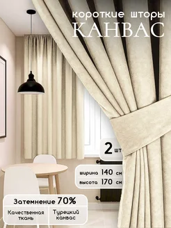 Шторы на кухню короткие, канвас 140x170 см